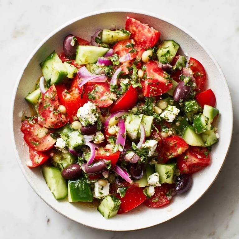 Save I was rushing through a hot afternoon last summer when I threw this salad together with whatever looked good at the market. The cucumbers were cold, the tomatoes still warm from the sun, and I didn't measure a thing. It tasted like vacation, like sitting by the sea with nothing to do but eat slowly. I've made it a hundred times since, and it never gets old.