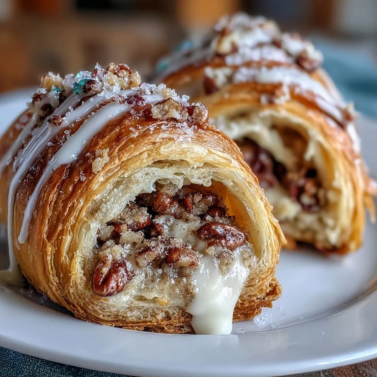 Save The magic of this recipe lies in its simplicity and accessibility. By starting with quality store-bought croissants—preferably day-old for easier handling—you skip the labor-intensive lamination process while still achieving that signature flaky texture. The pecan filling, enriched with butter, brown sugar, and a blend of cinnamon and nutmeg, transforms into a luscious cream that seeps into every layer of the croissant as it bakes. The final touch of vanilla icing and colorful sanding sugars doesn't just make these croissants Instagram-worthy; it honors the centuries-old King Cake tradition that marks the Epiphany season leading up to Fat Tuesday.