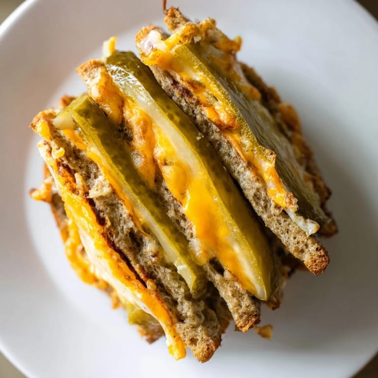 Save I discovered this sandwich by accident on a lazy Saturday when I had sharp cheddar and pickles but nothing else. Instead of scrambling to the store, I threw the cheese in the oven with some pickle slices tucked between, and within minutes I had this crispy, tangy creation that tasted like someone had engineered the perfect low-carb indulgence. My partner walked in mid-melt, caught the smell, and suddenly it wasn't just my experiment anymore—it became our new favorite.