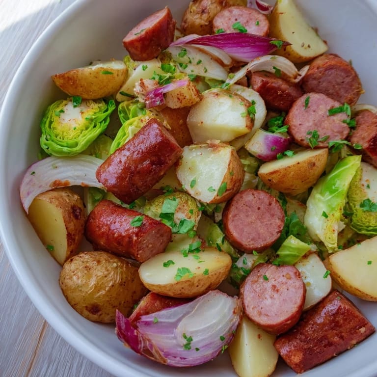 Save I threw this together on a Tuesday night when the fridge looked bare and everyone was grumpy. The cabbage had been sitting there for days, the sausages were a last-minute grocery grab, and I had zero energy for multiple pots. I tossed everything into one pan, shoved it in the oven, and walked away. When I came back, the kitchen smelled like a cozy pub in autumn, and suddenly everyone was in a better mood.
