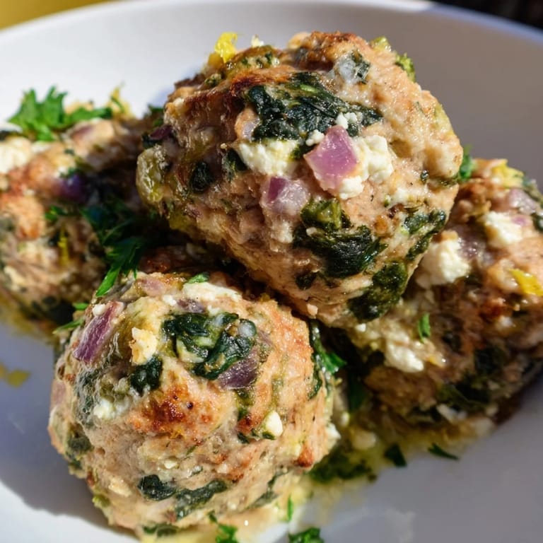 Save There's something about the smell of feta and fresh spinach hitting a hot oven that instantly transports me to a sunny Mediterranean afternoon. I stumbled onto this recipe on a Tuesday when I had ground turkey in the fridge and a half-wilted bunch of spinach I needed to use before it turned completely sad. Instead of tossing it into a boring stir-fry, I decided to mix it with crumbled feta and some dried herbs, form it into little balls, and let the oven do the work. Twenty minutes later, my kitchen smelled like a Greek seaside taverna, and I realized I'd accidentally created something I'd never stop making.